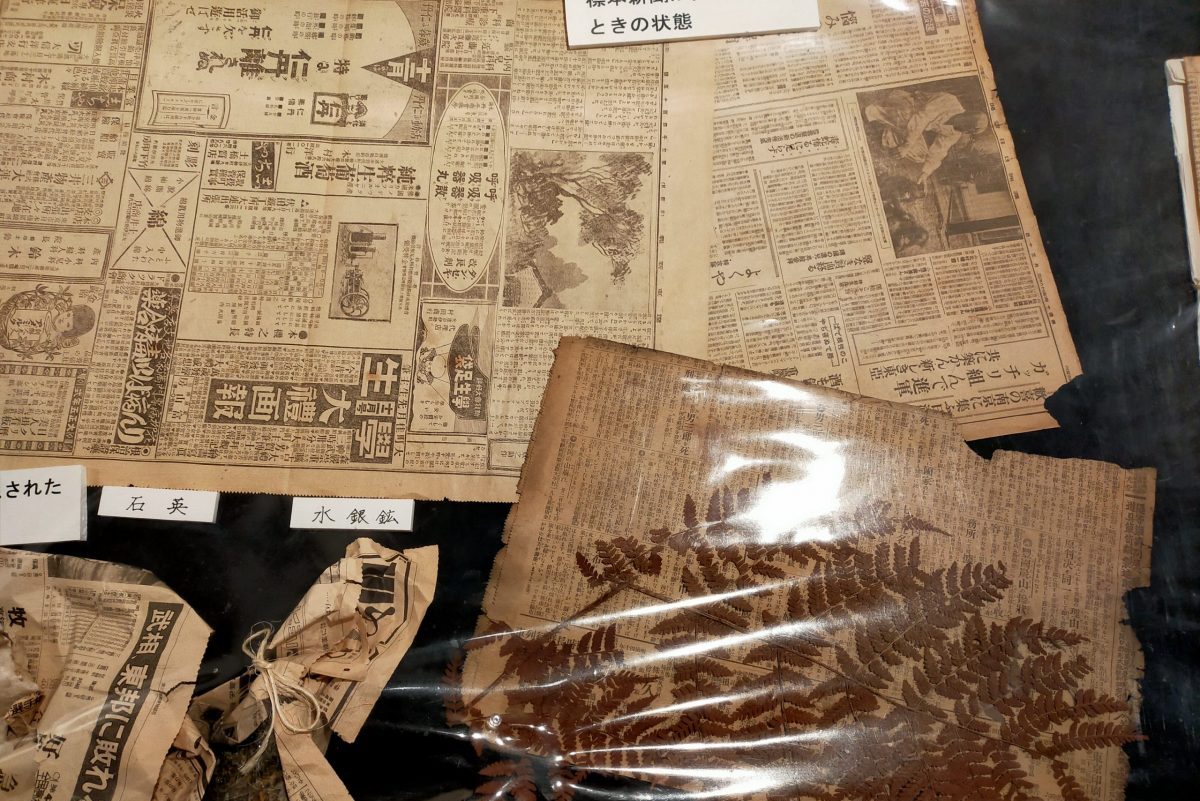 *Photo on the right : Plants preserved since the 1930s in old newspapers which are also on display.