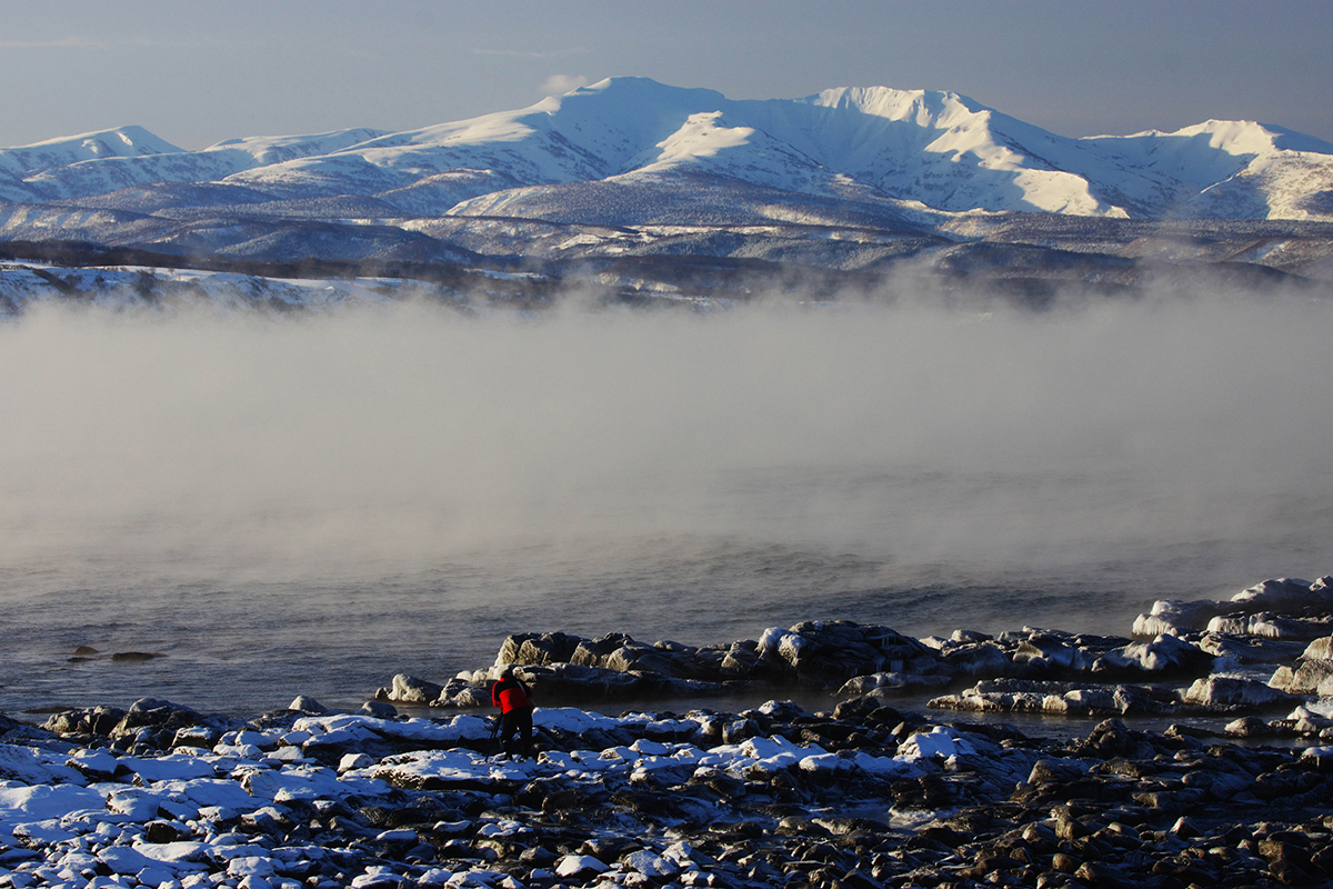 In the Rumoi sea, there are curious phenomena that can be seen only in the winter. These are called sea foam/ocean foam/beach foam or spume (nami no hana / 波の花, literally ‘flowers of the waves’) and frost smoke (kearashi / 気嵐 or けあらし). Seafoam consists of organic matter that is churned into foam when the seawater is agitated. This phenomenon happens in the Sea of Japan, especially during the winter when the sea is rough and the waves are high and the foam is washed up to the beach. Frost smoke or sea smoke happens on a cold day when cool air mass flows on the surface of a (relatively) warm sea. It looks as if there was smoke coming out of the sea. So, even if Rumoi might only feel like a very cold and snowy place in the winter, there is something special to see in the winter, too!