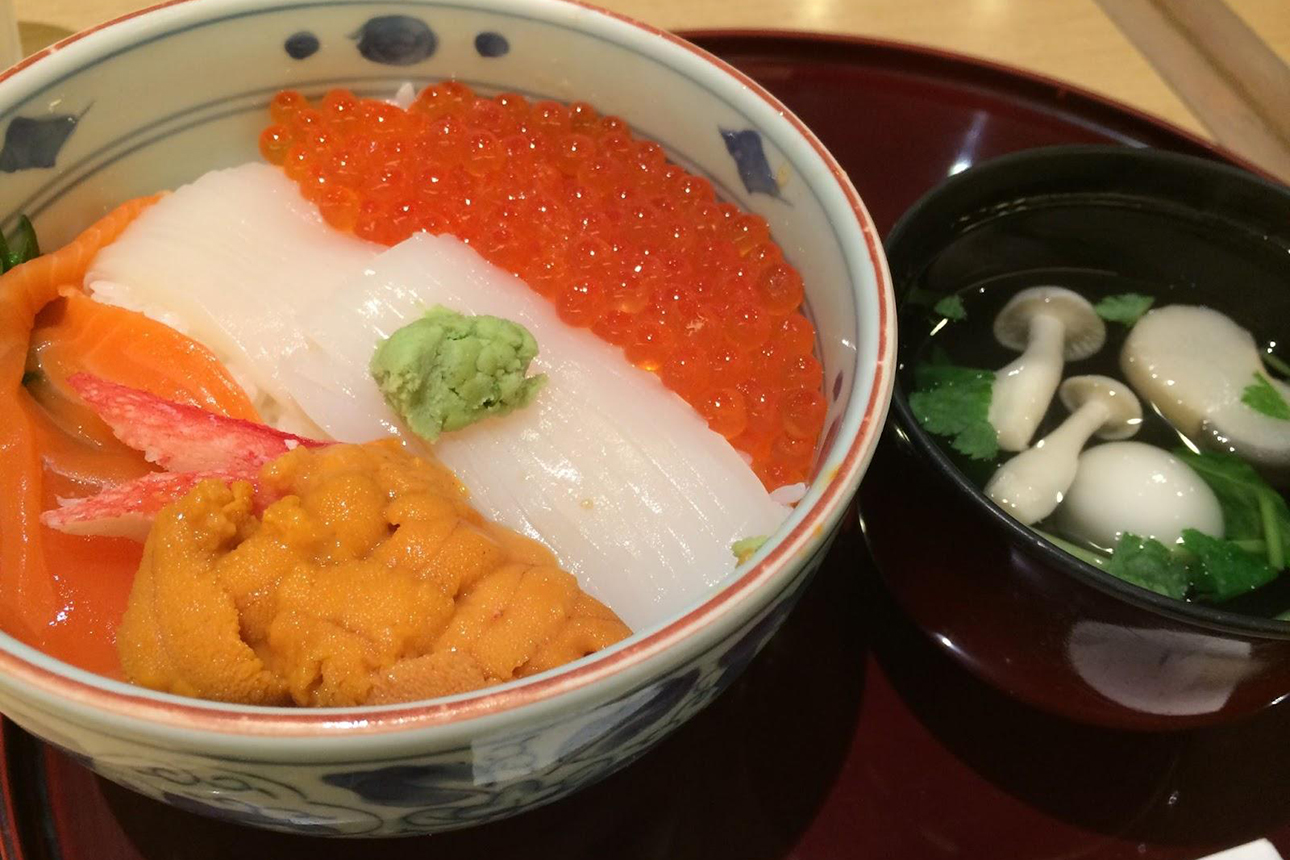 <Seafood>: Sea urchin, crab, salmon, fish roe, and more.