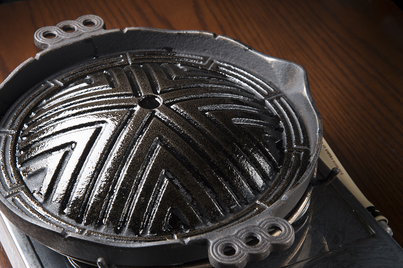 Another distinctive feature is the iron pot with grooves carved into it which is used for cooking Genghis Khan. The pots, which are both functional and beautifully designed, are works of art in their own right, and there is even a Genghis Khan Pot Museum in Hokkaido. It is no exaggeration to say that it is the dome-shaped pot which makes Genghis Khan what it is. The world’s only museum housing over 500 old and new Genghis Khan iron pots encapsulates the cultural history of Genghis Khan cuisine, unfolding from those very vessels. The iron pot conducts heat evenly and maintains the ideal temperature for sheep meat, which loses its flavour when it cools down. It also has grooves around the edge to drain off the fat, making it the perfect shape for grilled sheep meat dishes.