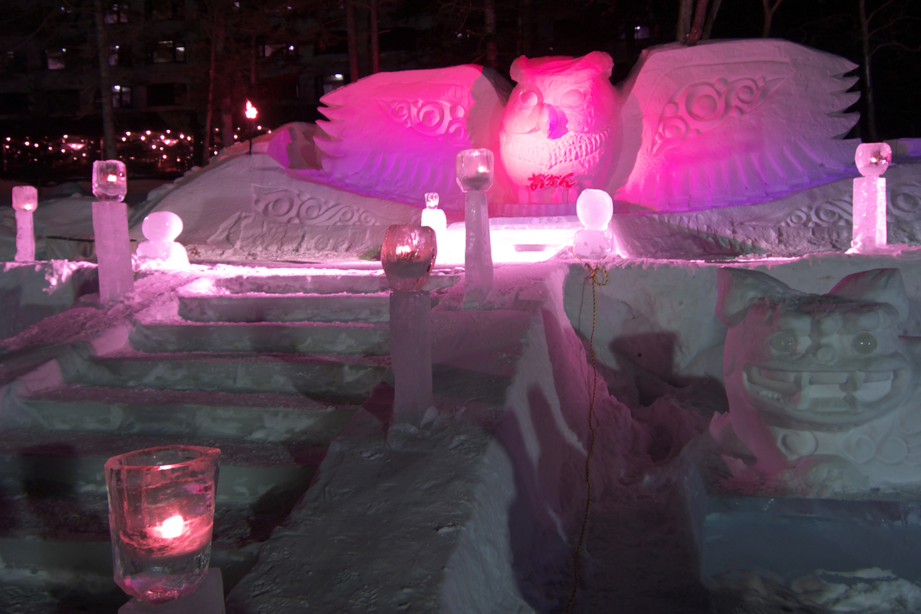 The Lake Akan Ice Festival is held from February to early March. You can experience snowmobiling and banana boat rides, and enjoy ceremonies by the indigenous Ainu people of Hokkaido and fireworks at night.