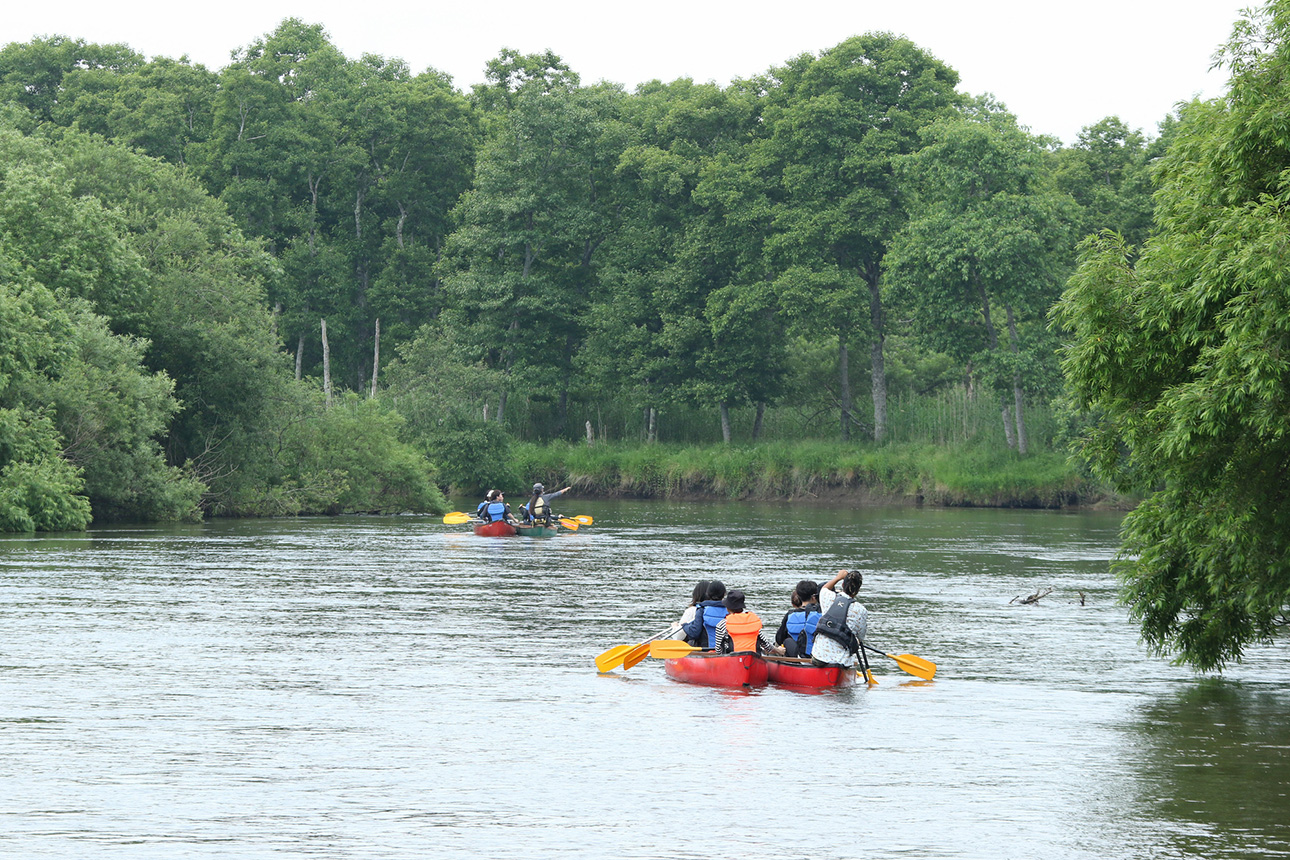 A particularly recommended activity is canoeing down the Kushiro River, which flows through the marsh. In the marsh, where there are no artificial sounds but only an expanse of silence, you can hear only the voices of birds and the sound of the wind. Paddling quietly down the river in a motorless boat, you may see wildlife such as Ezo deer, red-crowned cranes, and various birds on nearby bushes or tree branches. These encounters will surely become cherished memories of your journey.