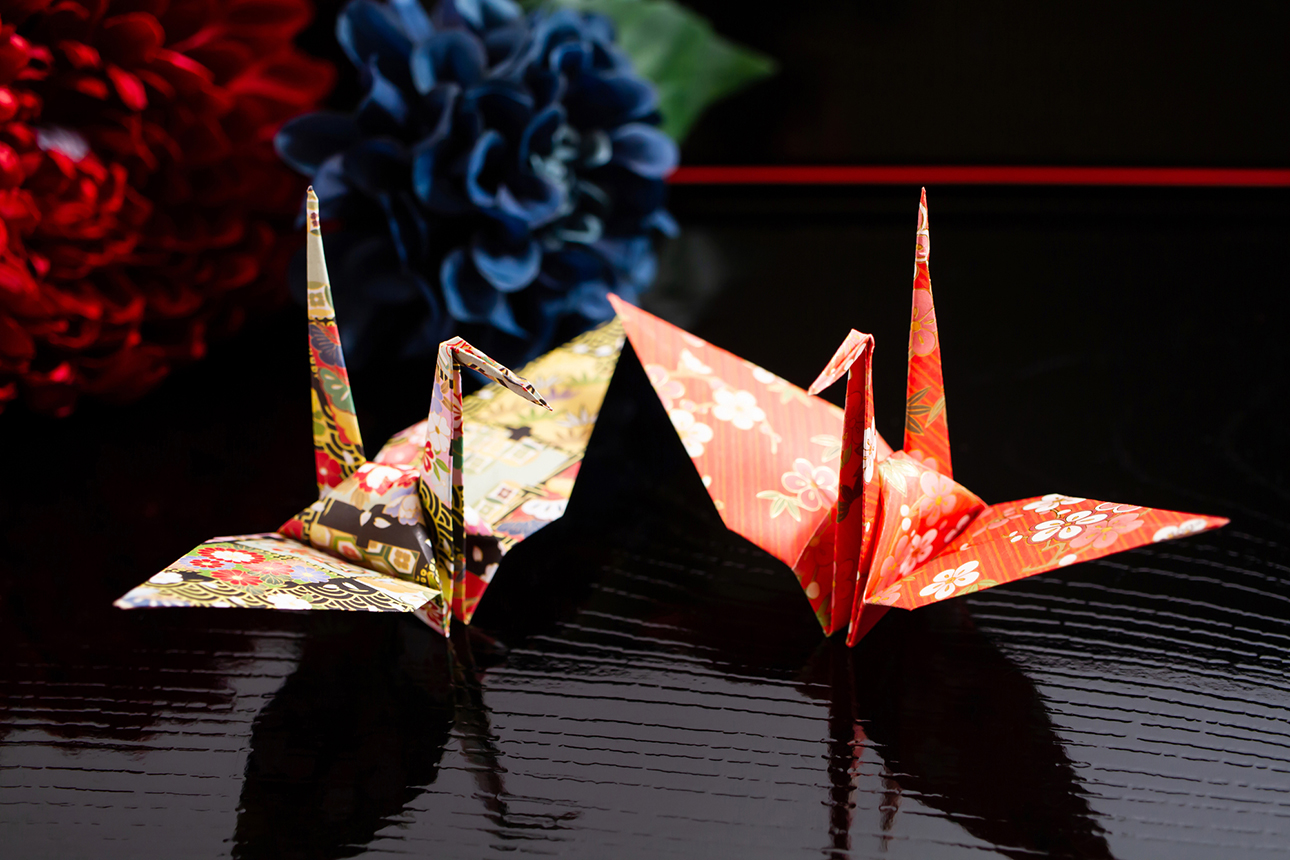 Driving through the outskirts of the city, you might spot pairs of cranes flying together. Red-crowned cranes are said to mate for life once they form a pair, making them a symbol of a happy marriage. A Japanese proverb goes, “Cranes live ten thousand years, turtles live a thousand”, so they are also a symbol of longevity and are considered auspicious birds. While the actual lifespan of a crane is about 40 years, this is considered long for a bird. The crane motif appears in various forms, such as family crests, celebratory envelopes, and kimono patterns for weddings. In origami, Japan’s traditional art of paper folding, the crane is one of the most commonly folded designs.