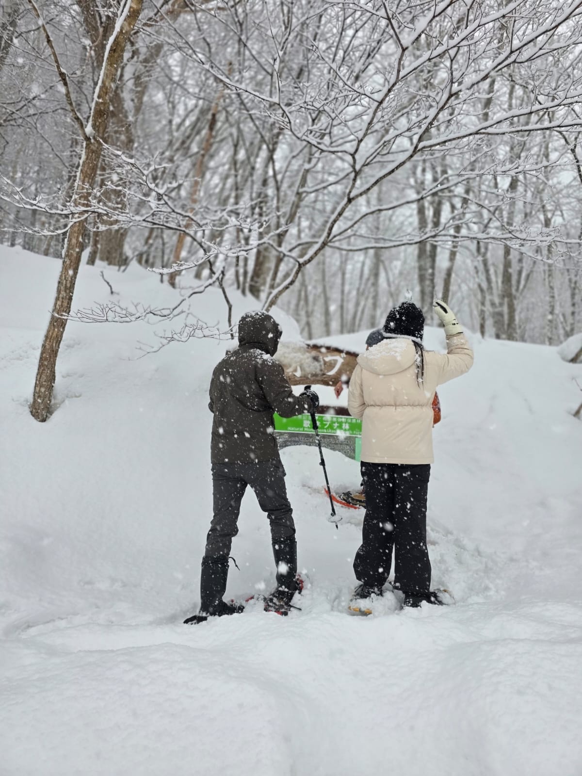 This was also our first proper winter experience, and we had a great time with the local guides and doing winter activities. For example, we had lots of fun snowshoeing through the forest at Kuromatsunai, and loved the quiet and serene atmosphere of the forest in winter. The trek also included sliding down a snowy slope followed by tea and chocolates, and the guide was very knowledgeable and shared many details about the forest’s flora and fauna with us.